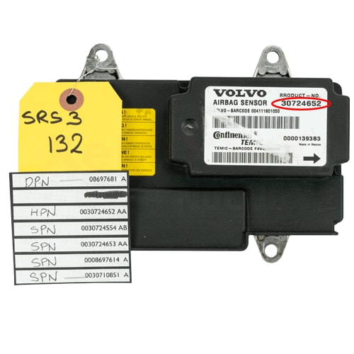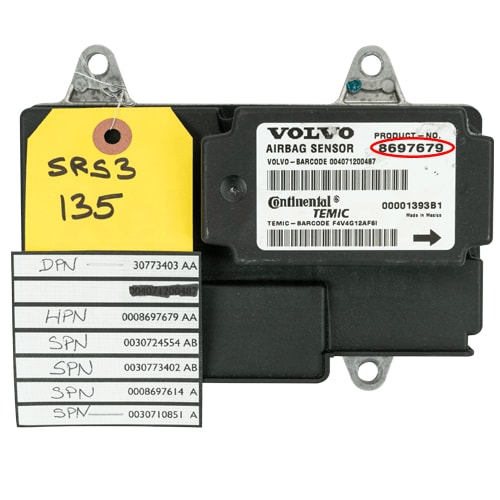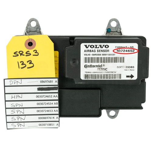 To read the software numbers from your SRS module you will need a specialized tool like Autologic, Snap-On or VIDA, or give us your vehicle’s VIN number and we can tell you what software package is in your module.